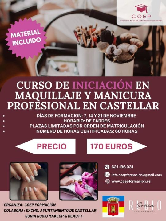 El Centro Oficial de Estudios Profesionales (COEP Formación) organiza en Castellar un curso de iniciación en maquillaje y manicura profesional, una oportunidad ideal para quienes deseen adentrarse en el mundo de la estética y la belleza con formación práctica y certificada.
