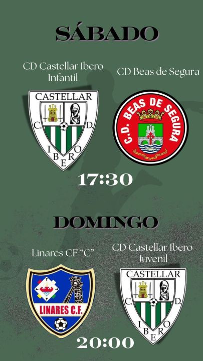 El equipo Infantil del CD Castellar Íbero también será protagonista este fin de semana defendiendo el liderato como local. Los más jóvenes recibirán en casa al CD Beas de Segura en un encuentro que promete emoción y buen fútbol.