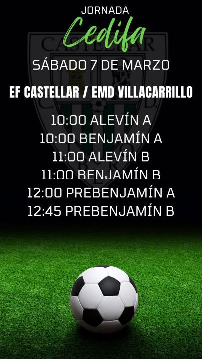 El sábado 7 de marzo se celebrará en Castellar una jornada especial de fútbol base entre la Escuela de Fútbol Castellar y la EMD Villacarrillo, en la que participarán varias categorías de la cantera.
