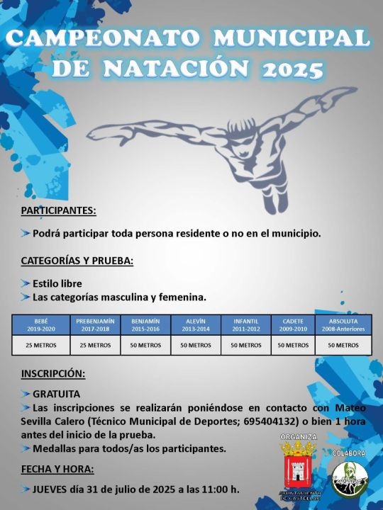 GRATUITA Las inscripciones se realizarán poniéndose en contacto con Mateo Sevilla Calero (Técnico Municipal de Deportes; 695404132) o bien 1 hora antes del inicio de la prueba.