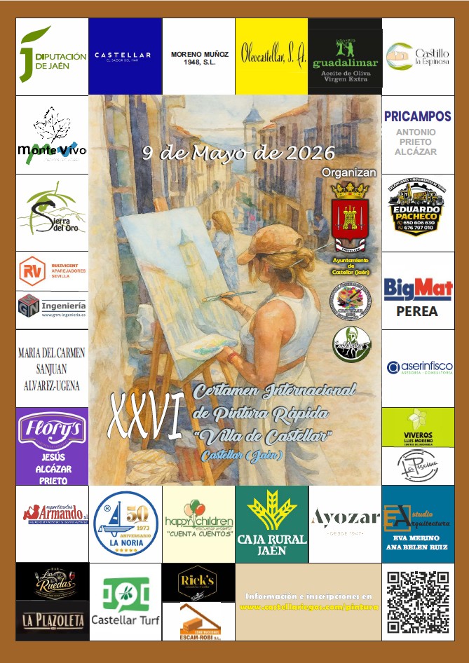 3º- Las inscripciones se pueden realizar en el Ayuntamiento de Castellar, personalmente hasta el día 8 de mayo, en la web www. castellariegos.com/pintura o a través del teléfono 953 400 156, de 11,00 a 13,30 y de 16,00 a 20,00 h, y el mismo día de celebración del certamen, de 9 a 11 de la mañana, en el Patio de la Colegiata de Santiago. Se recomienda la preinscripción a través de la web para evitar colas innecesarias el día del certamen