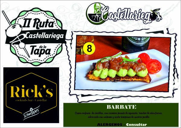 Aquí tenéis los nombres, ingredientes y fotos de las diez tapas que optarán a la mejor tapa de la II Ruta Castellariega de la Tapa. Disfrutar de vuestros bares... todos nos lo merecemos